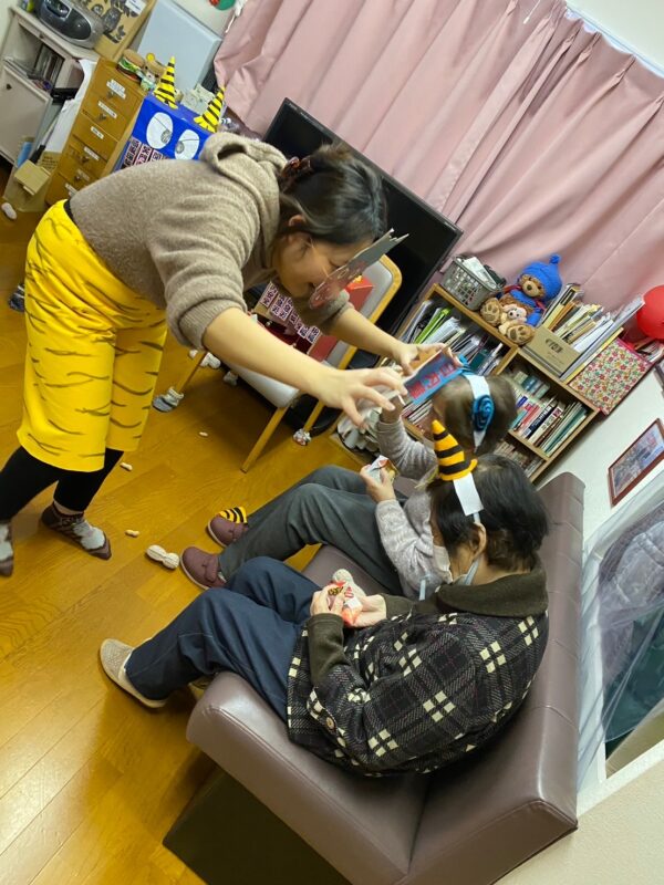 利用者様は思い思いに豆を「えいっ!」と投げつけておりました。
