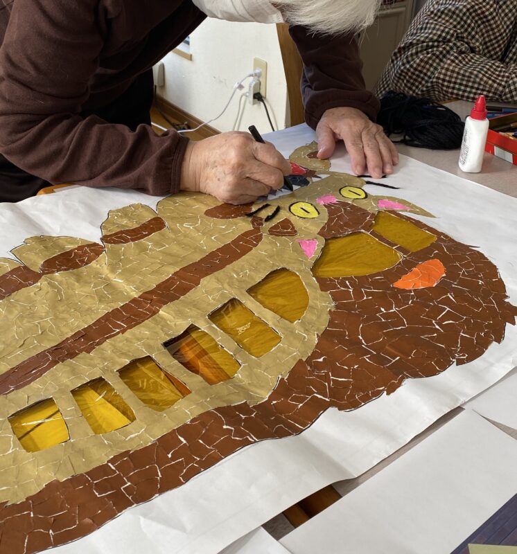 現在は「森の中に昔から住んでいる」かわいいキャラクターのちぎり絵を作成中です。