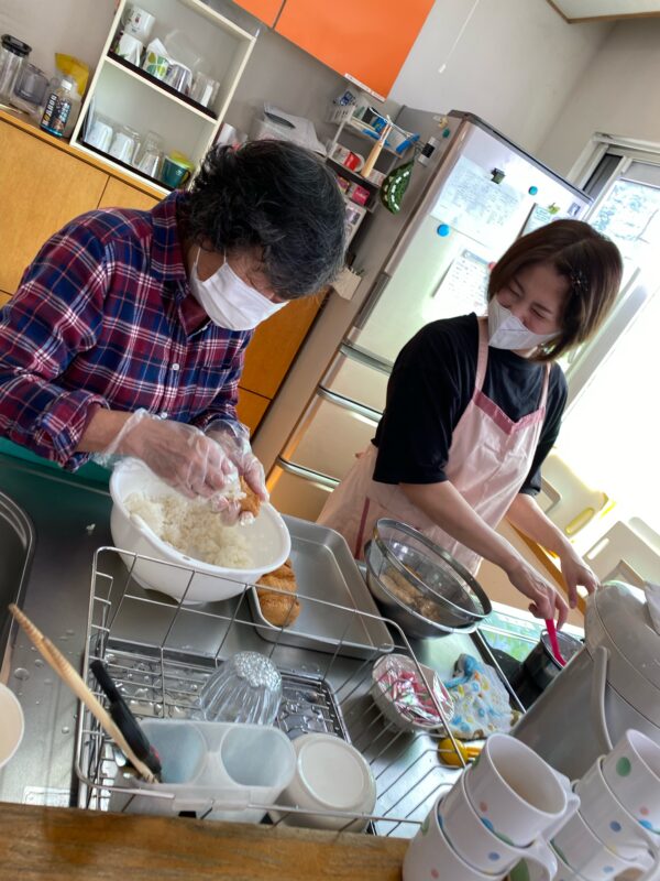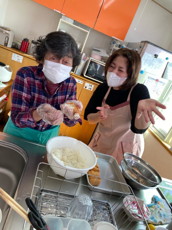 利用者様も手伝ってくだり、この日は稲荷ずしを作りました。