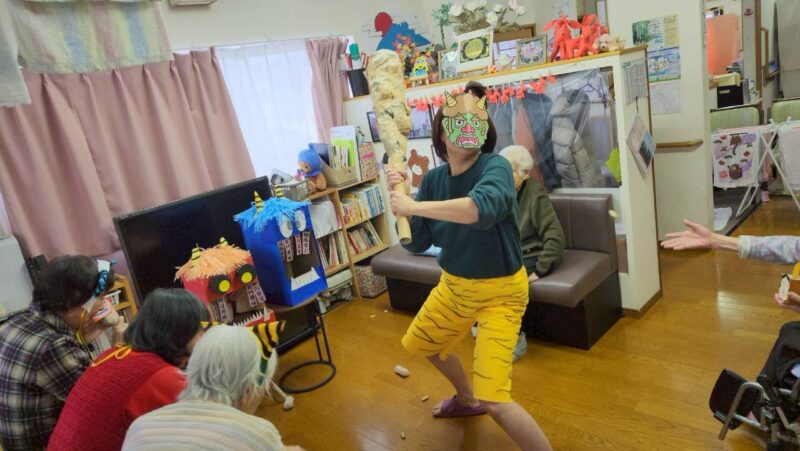 最初は遠慮していた利用者様も鬼の登場に徐々にヒートアップ!