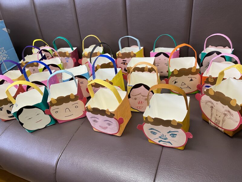 「なんだかみんな自分の顔に似ているね~」と完成した箱は豆まき後にご自宅へ持ち帰り。