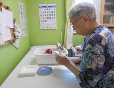 朝ごはんの後片づけ。「吉田さ~ん!」と声をかけると、にっこりとした笑顔で「これ拭…