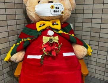 玄関で皆さまをお迎えしているくまちゃん 今年は少しおしゃれをしています(…