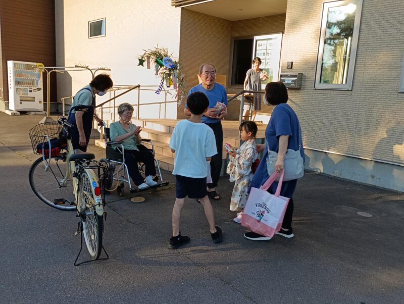 「竹に短冊 七夕まつり〜♪」と歌いながら、にぎやかに施設の中を歩き回る姿。