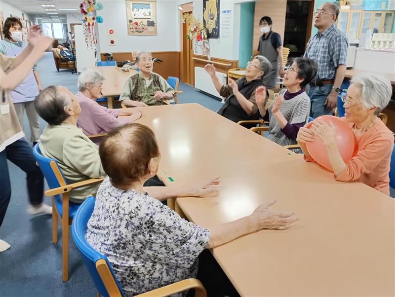 晴れやかの雰囲気も変化してきており、卓球で楽しんだり、トランプで勝負したり、風船バレーを手や足でしたり、