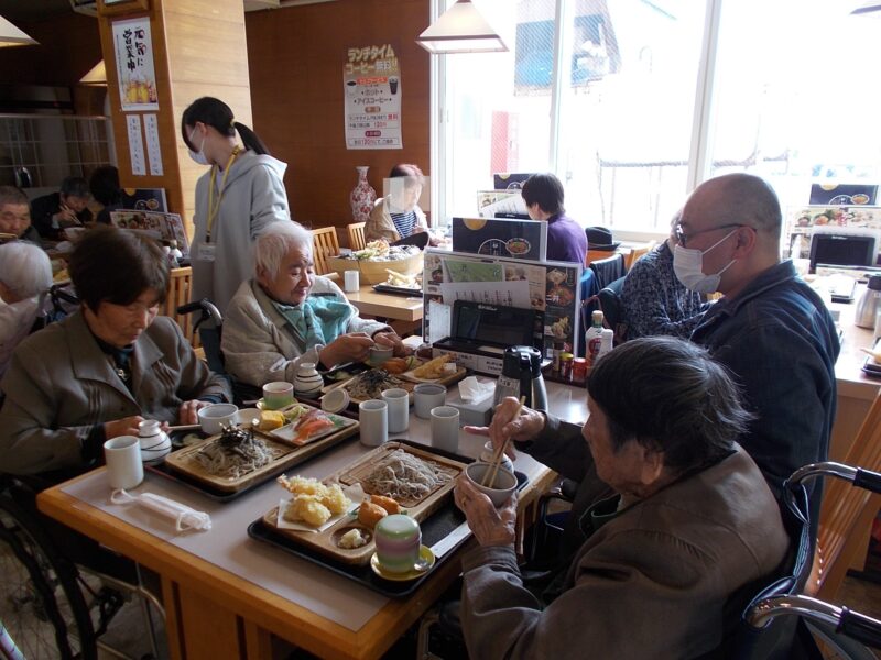 まずは、利用者様から「食べたい」「行きたい」の声が多かったのとやさんでお昼ご飯を食べました。