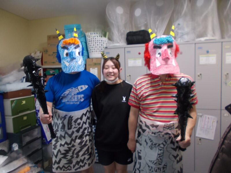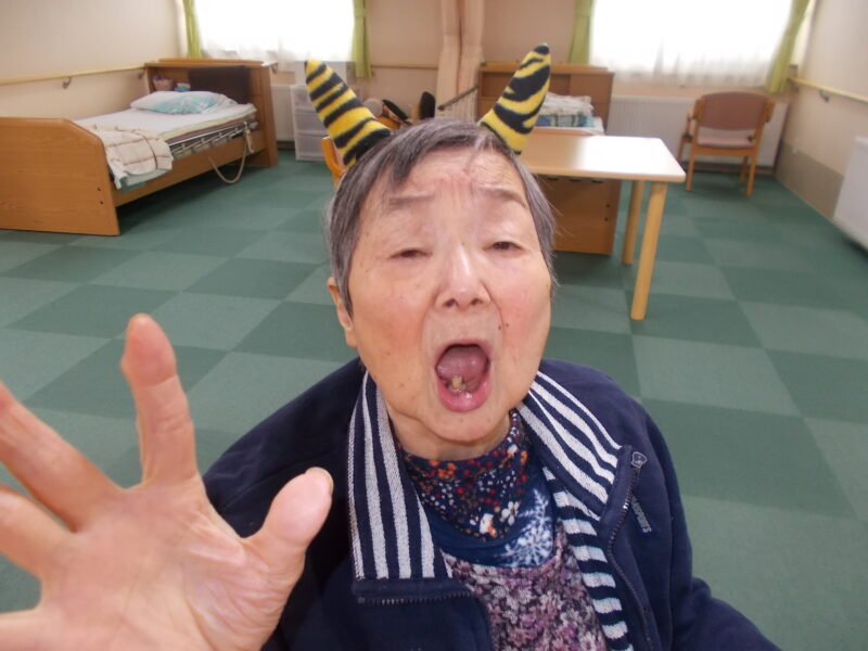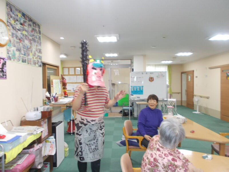 利用者様には豆の代わりに柔らかいお手玉を使って見事に鬼退治していただきました!