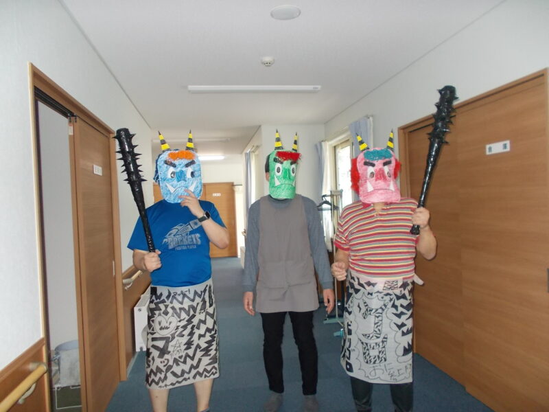 今年の鬼は一味違います。なんと、鬼のお面は利用者様と一緒に制作!