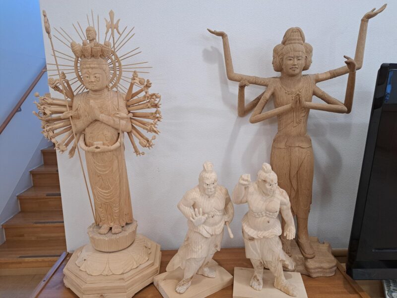 「始めたのは10年くらい前かな?仕事を辞めてから、夕刊で仏像彫刻の記事を見つけて、興味が湧いたんだ。