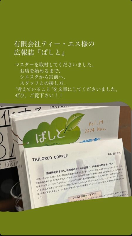 今回のVOL.29で取材をした「tailored coffee」さん、
