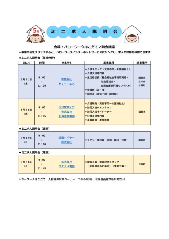ハローワークはこだてにて「ミニ求人説明会」に参加します!