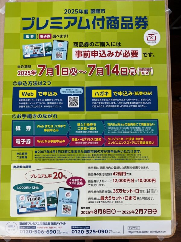 「函館市プレミアム付き商品券」(利用開始2025年8月8日(金)~)