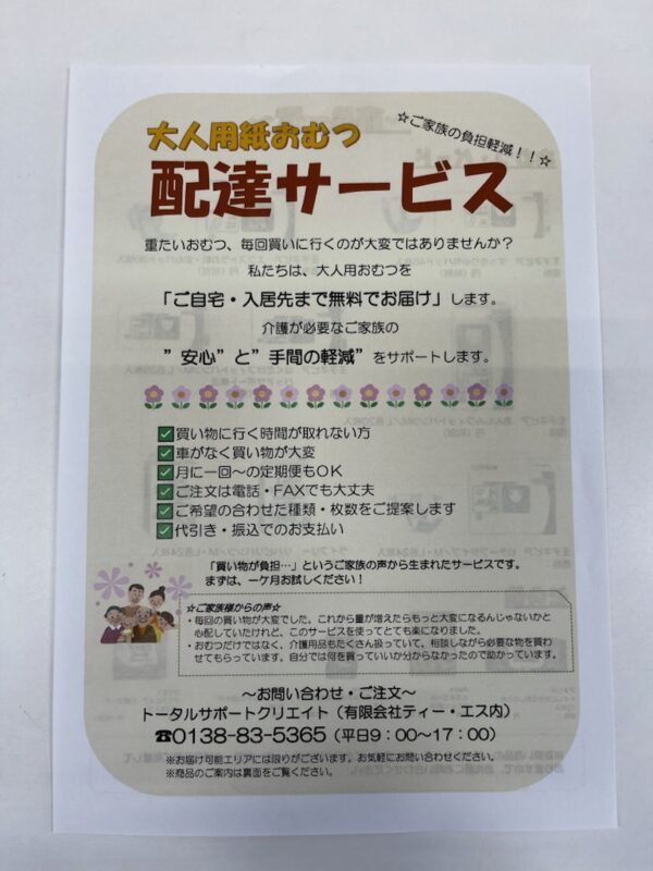 さて、先日「大人用おむつ配達サービス」の